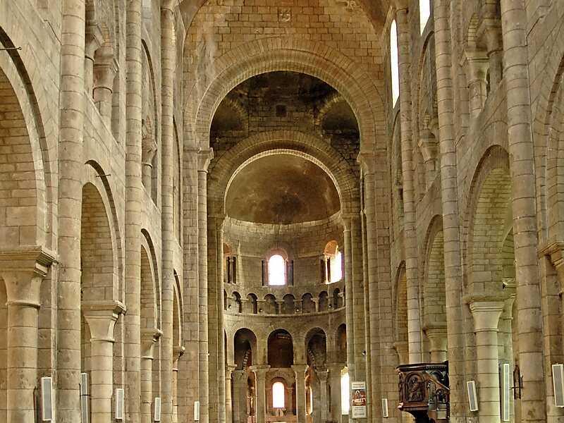 La bóveda fue desarrollada para permitir la construcción de techos de piedra. Bóvedas de cañón o túnel consistía en una superficie continua de secciones semicirculares o puntiagudas que se asemejan a un cañón o túnel que ha sido cortado por la mitad longitudinalmente. Las bóvedas de arista fueron producidas por la intersección, en ángulos rectos de dos bóvedas de cañón. Los arcos de las bóvedas de arista eran apuntados o de medio punto.